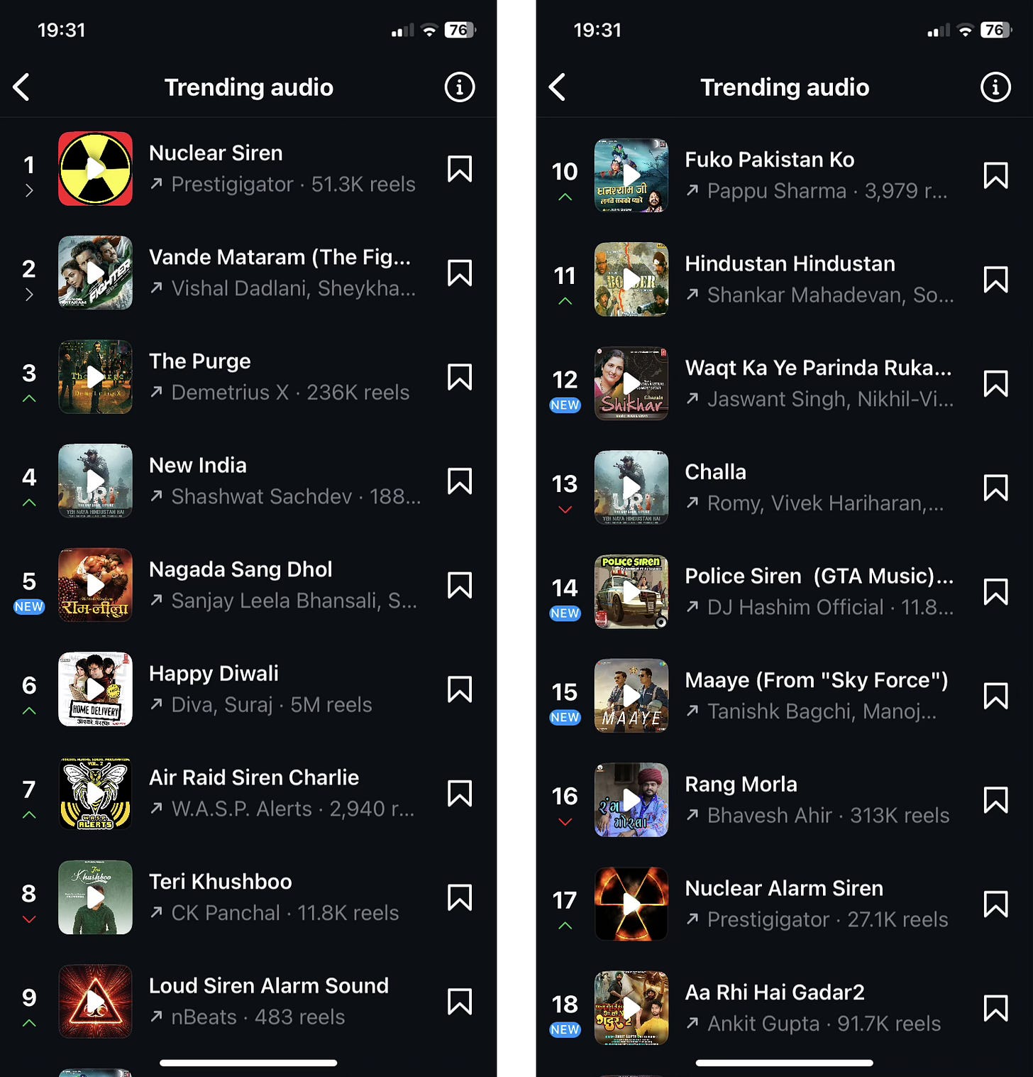 There was a war brewing. As usual, traditional news channels pushed their propoganda, independent journalists tried to correct them, WhatsApp was filled with misinformation and forwards of sloppy AI edits. Among all this noise, something caught my attention. Instagram stories. More specifically, the songs that were trending on those days in Instagram.